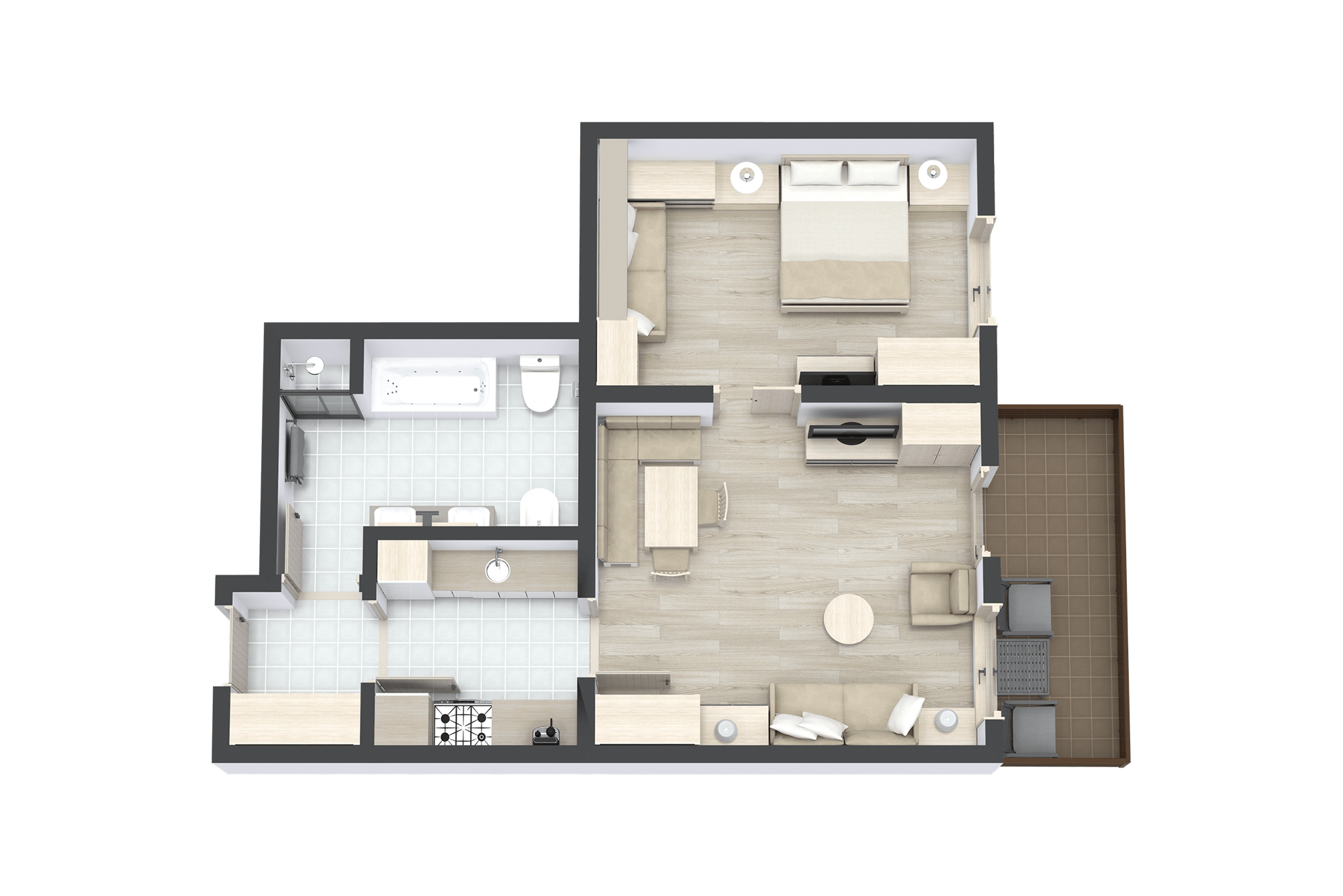 Appartamento molto carino per 2-4 persone, composto di cucina, un bagno spazioso, una stanza da letto (letto matrimoniale + divano letto), un ampio soggiorno (con divano letto matrimoniale) e un balcone soleggiato.