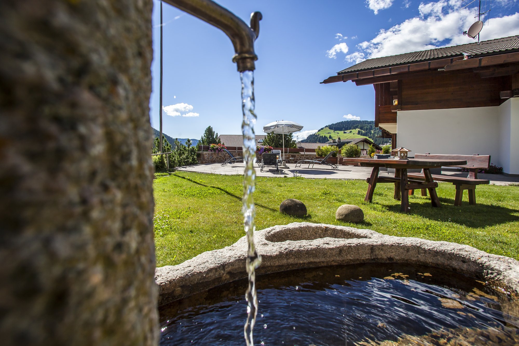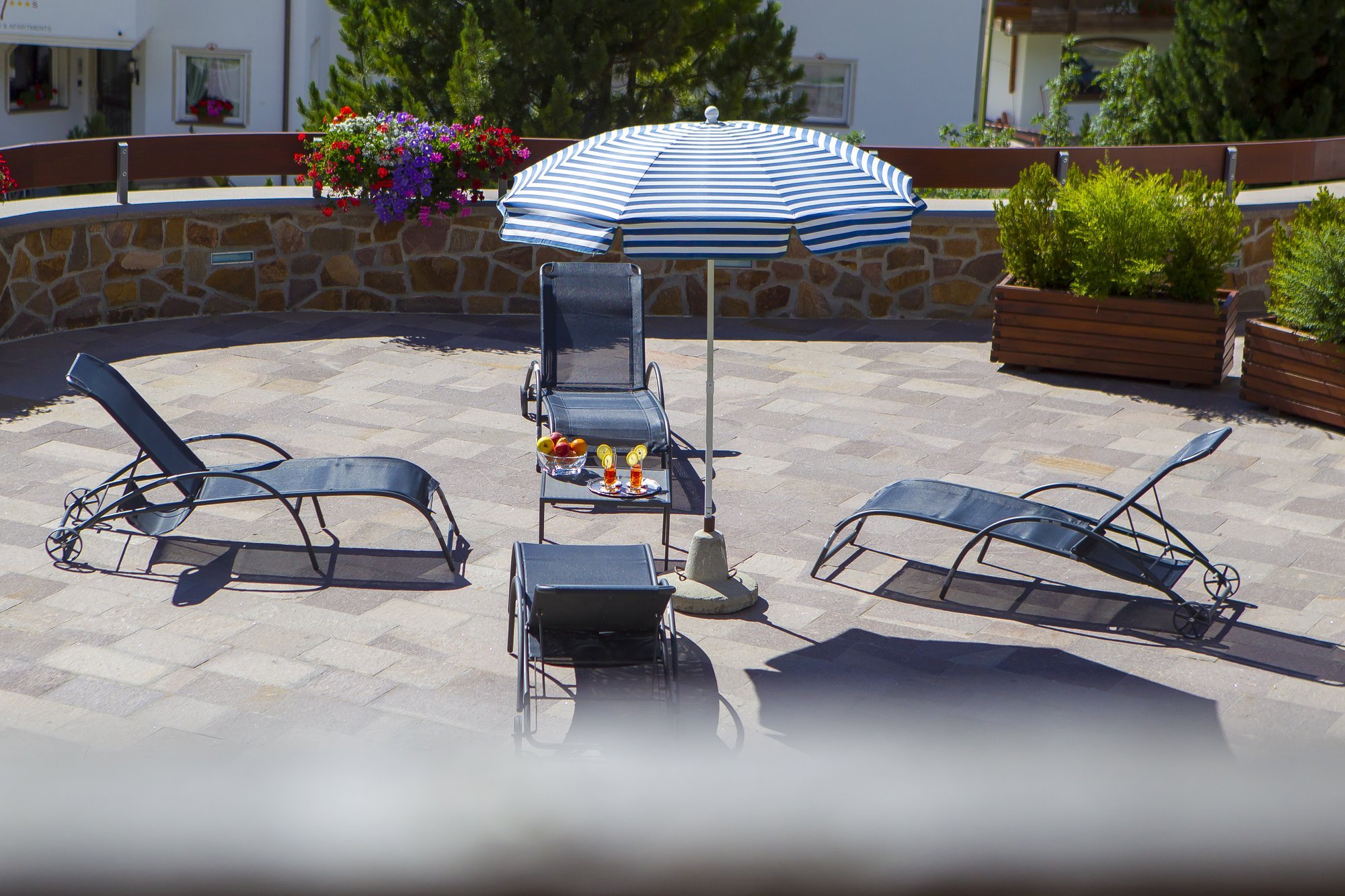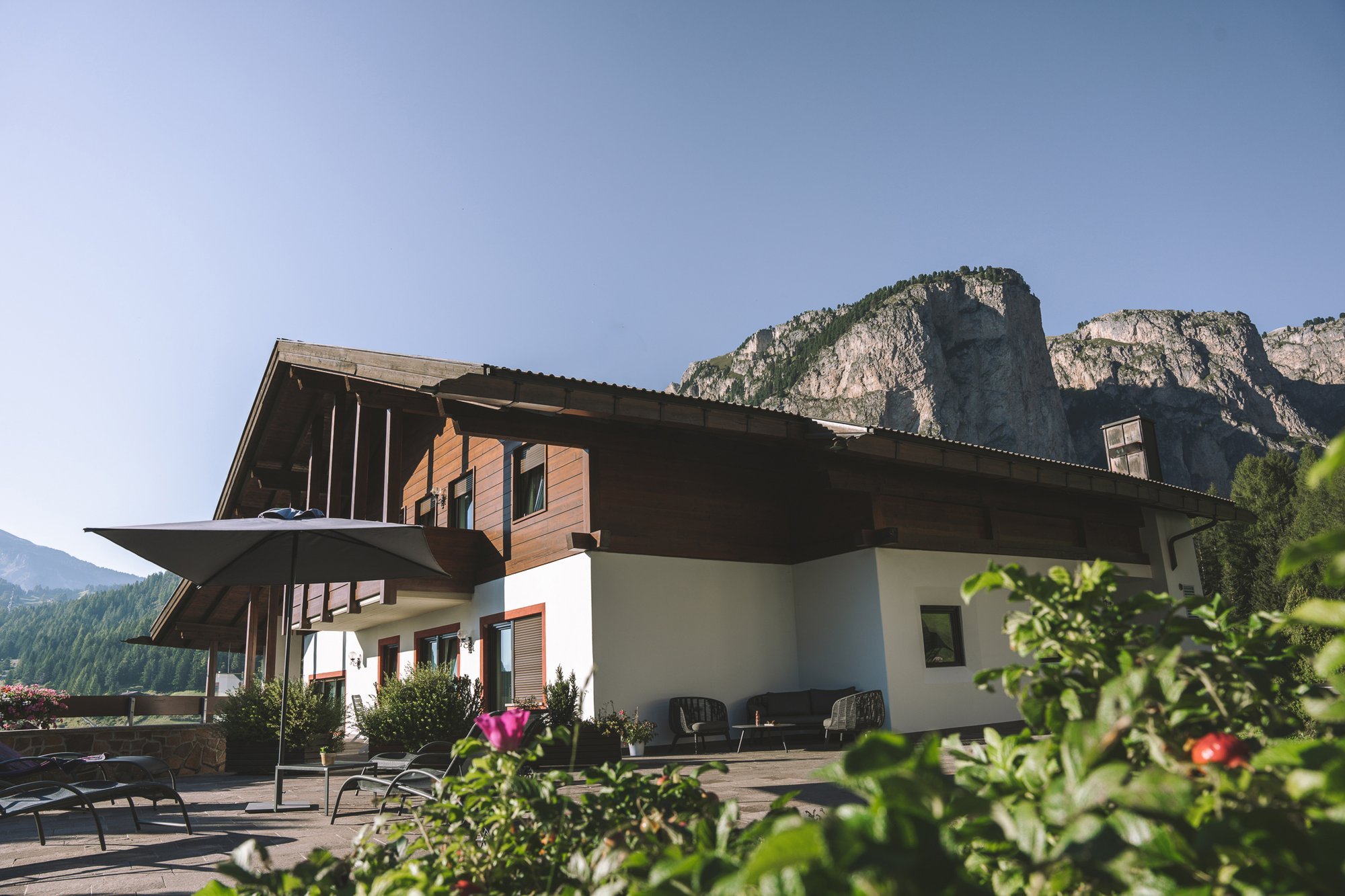 La terrazza solarium è il luogo ideale per rilassarsi e godersi il panorama in ogni stagione. Anche in inverno, dopo una giornata intensa sugli sci, invita a concludere la giornata in un'atmosfera suggestiva. Accanto alla terrazza soleggiata, il nostro focolare regala serate magiche e conviviali sotto il cielo stellato.