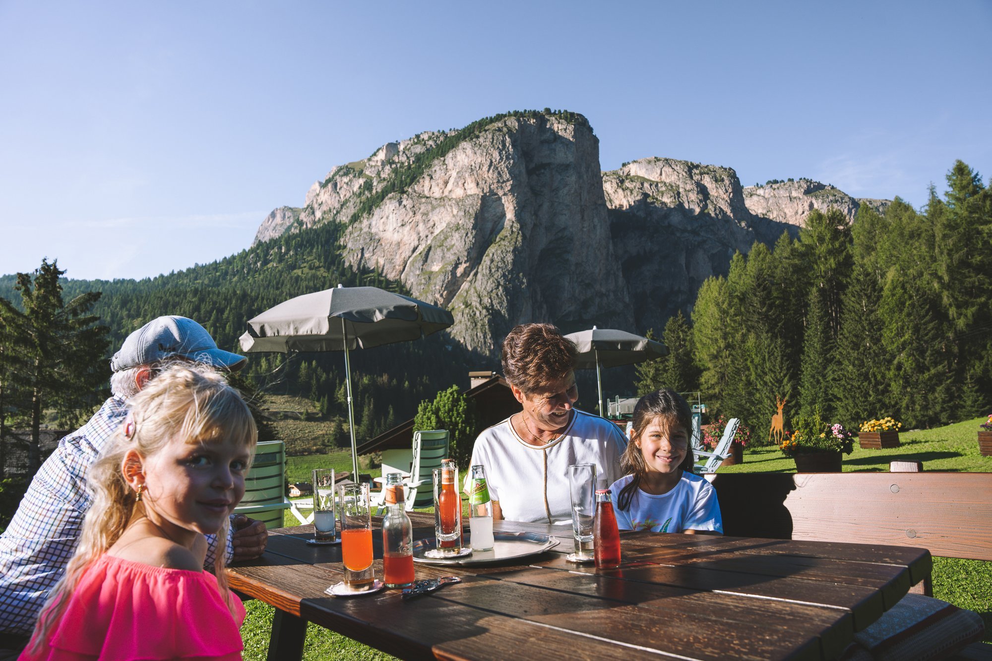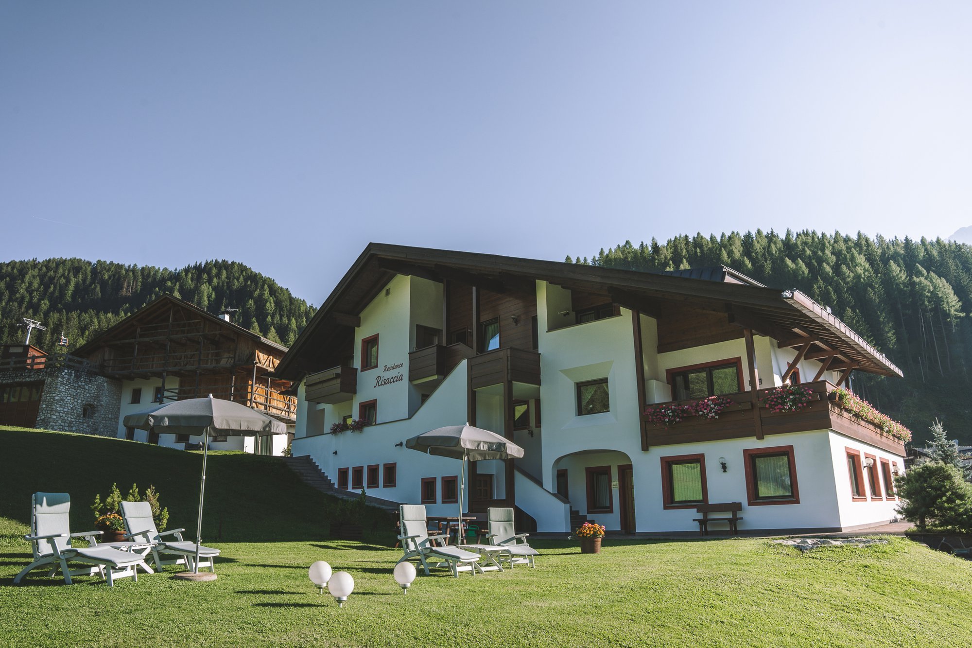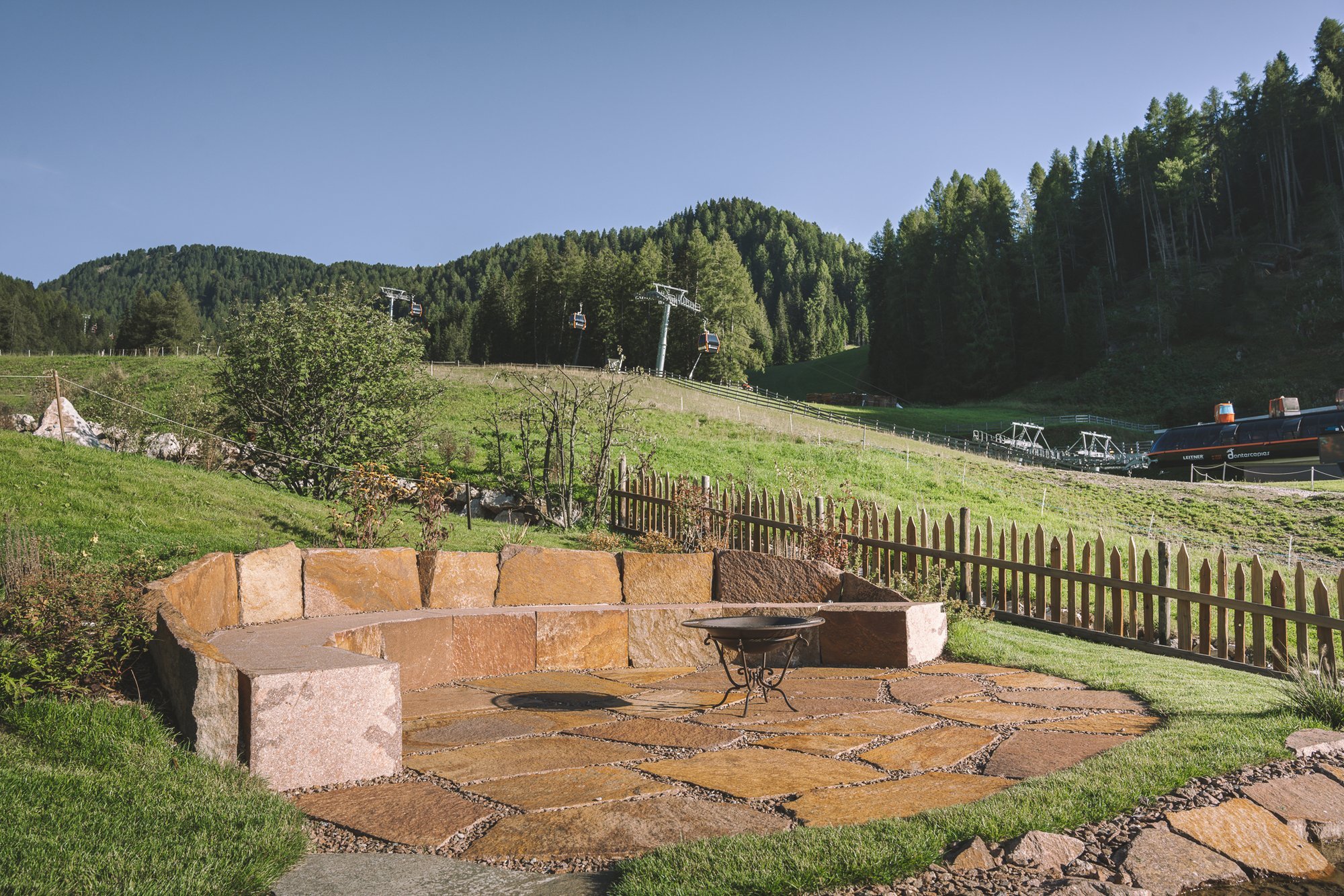La terrazza solarium è il luogo ideale per rilassarsi e godersi il panorama in ogni stagione. Anche in inverno, dopo una giornata intensa sugli sci, invita a concludere la giornata in un'atmosfera suggestiva. Accanto alla terrazza soleggiata, il nostro focolare regala serate magiche e conviviali sotto il cielo stellato.