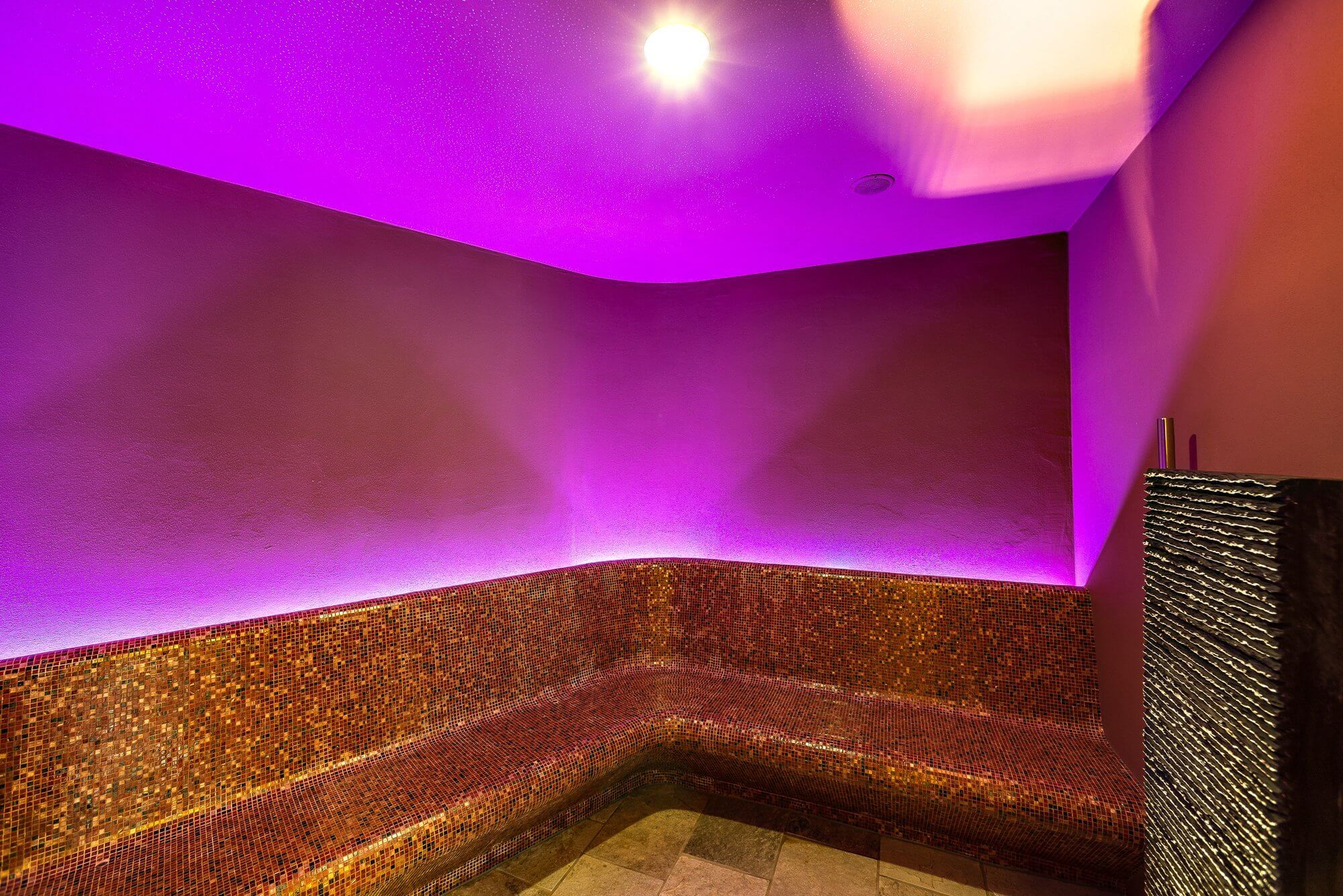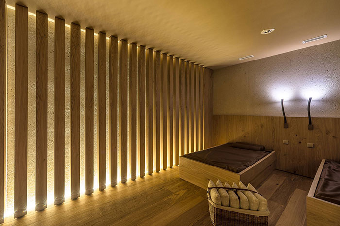 Dopo una giornata attiva sulle piste o sui sentieri escursionistici, potrete rilassarvi nel piacevole calore della sauna finlandese o del bagno turco. A seguire, non resta che sdraiarsi sui letti ad acqua o nella sala relax per staccare la spina e ricaricare le energie.